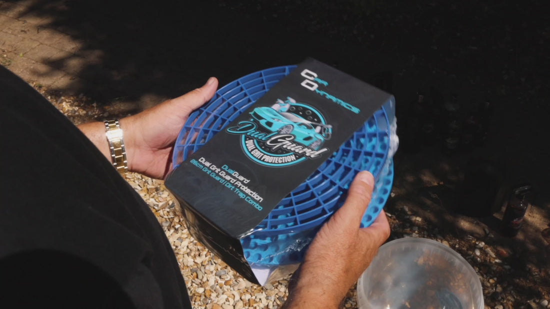 DualGuard enables the dirt trap and grit guard to work in unison and consequently combine the best of both worlds while eliminating the weaknesses of both individual solutions. The dirt trap uses its ~300 cyclonic funnels to act as a one-way valve that catches and pushes dirty wash water underneath its guard, consequently trapping the dirt and ensuring removed dirt does not make its way back onto your car. This counters the weakness of a grit guard which cannot as effectively prevent dirt in wash water swirling up back on to the wash mitt. In contrast, the grit guard which is placed above the dirt trap is used to wipe the dirt off the mitt and under the guard by utilizing its abrasive surface and ~200 individual segments. This negates the weakness of the dirt trap which has a smooth surface and is not as effective in wiping dirt off the mitt.