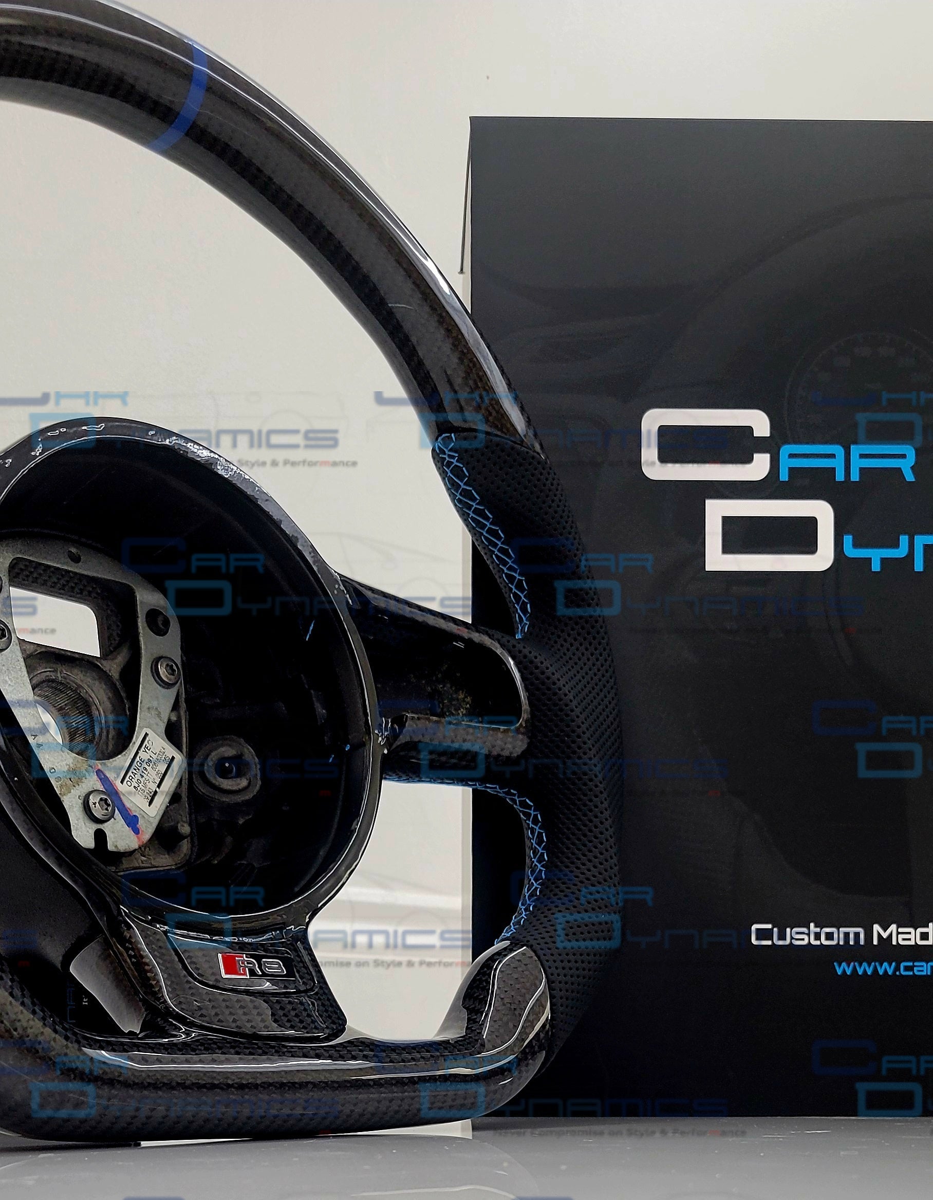 Hand-finished carbon fibre and perforated Nappa leather constructionCustomisable options: stitching colours, 12 o’clock markers, and grip profilesOEM fitment for Audi R8 GEN 1 modelsFlat-bottom inspired by motorsport designOptional bespoke features available – please contact us for custom requests