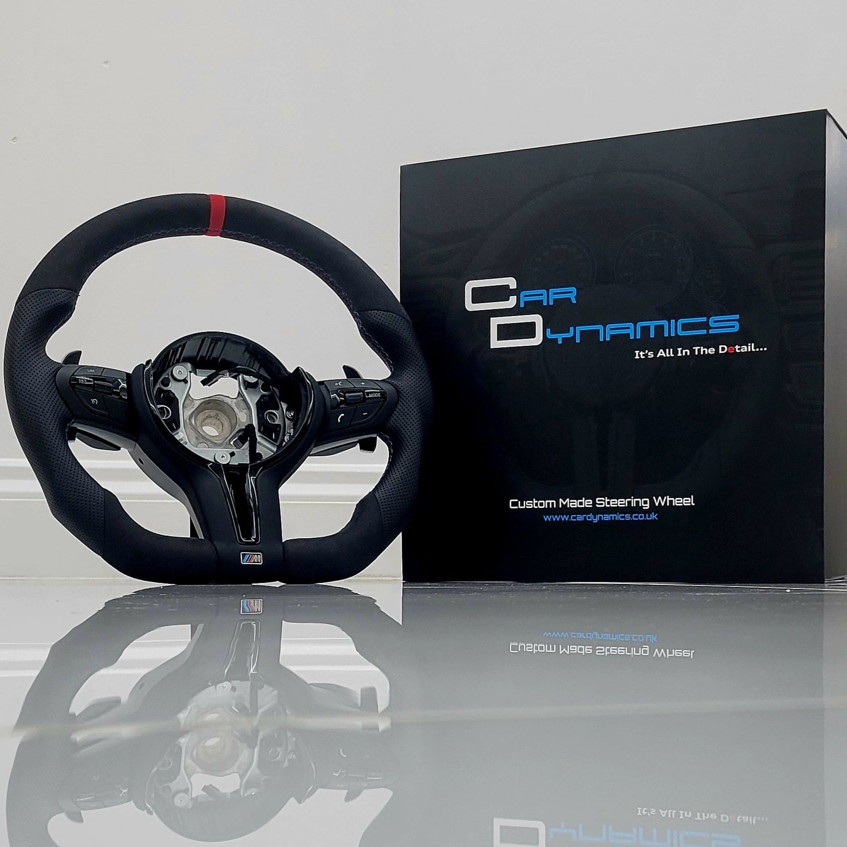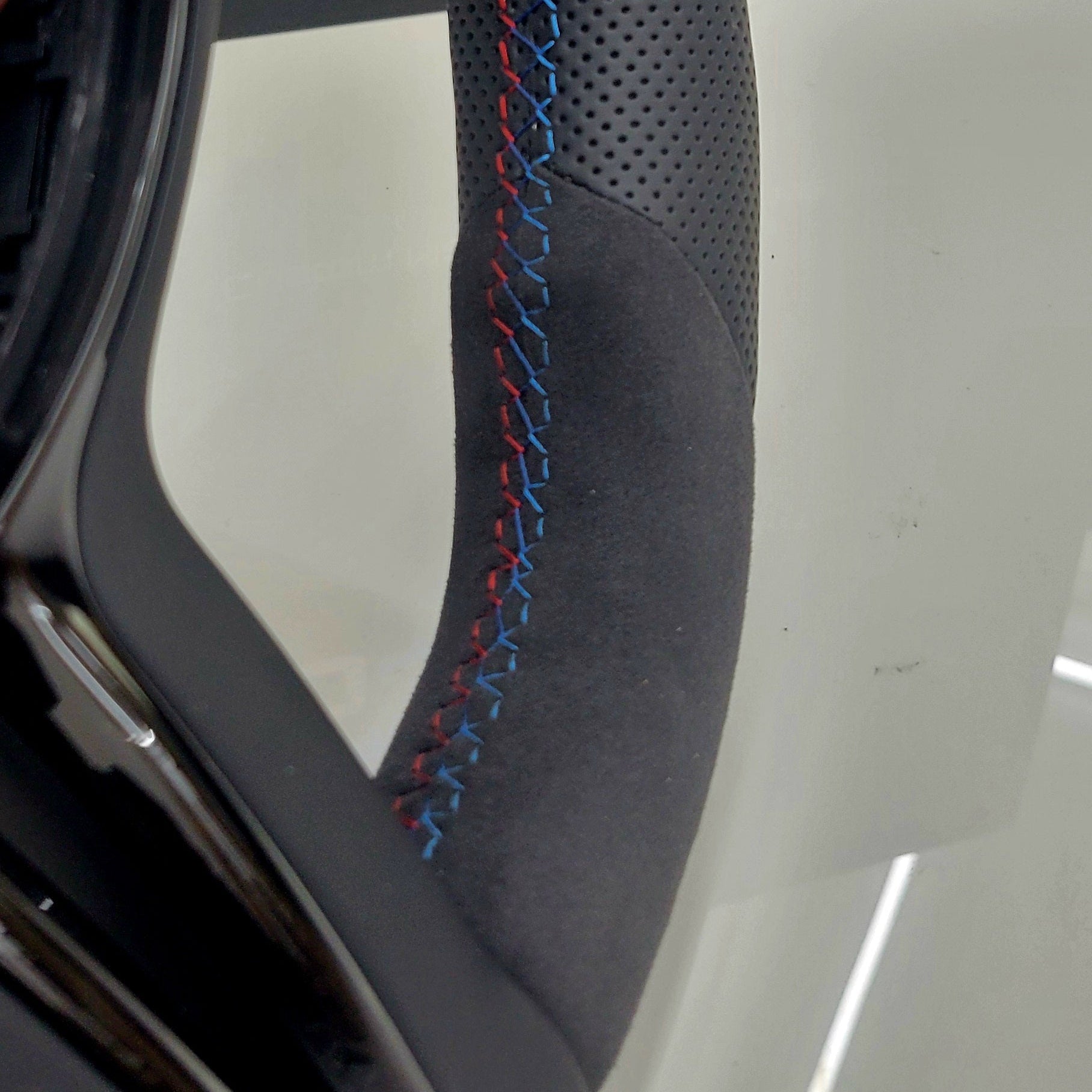 Premium Sports Steering Wheel UpgradeA sleek, performance-focused upgrade for your BMW F-Series, featuring gloss black & gloss black accents, tri-colour M-Tech stitching, and integrated paddle shifters.