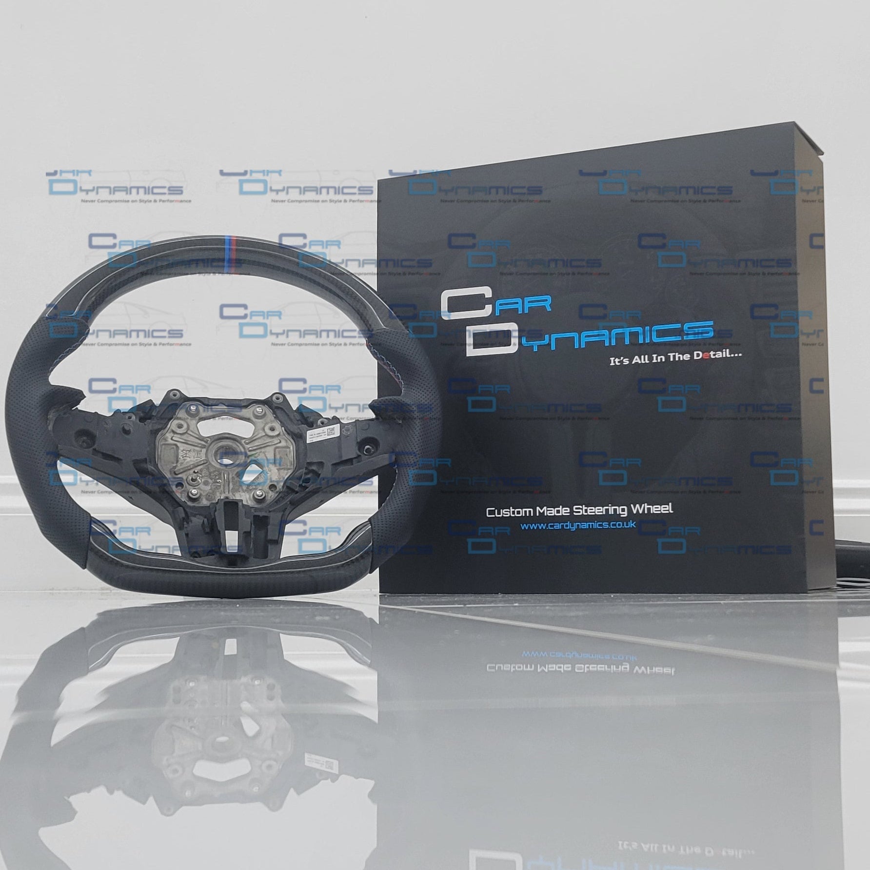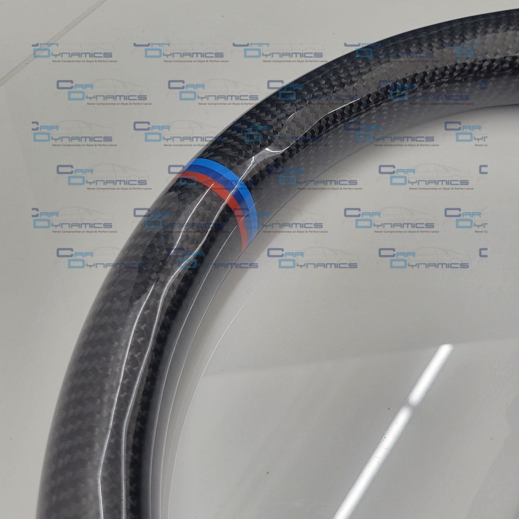 High-quality Carbon Fibre & Leather with signature M-Tech tri-colour stitching around the edges for a premium and sporty finish.