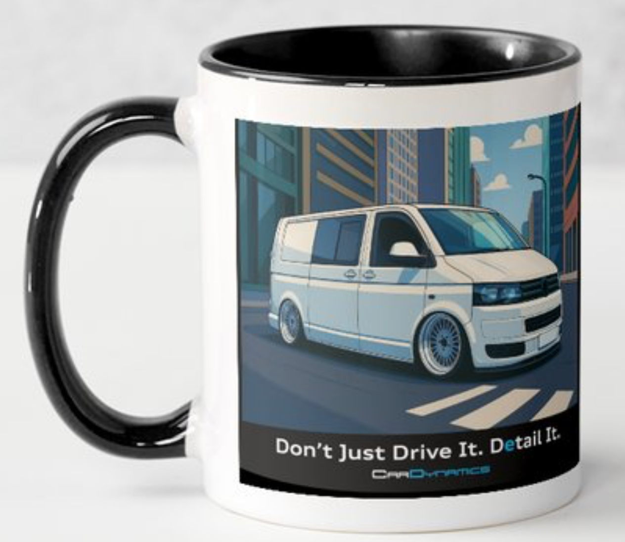 Featuring the custom made image of Lee's T5 and the Car Dynamics logo it’s more than just a mug, it’s a badge of honour for detailers and car lovers alike. Crafted with a bold yet refined colour inlay design, the Caffeine Delivery Vessel adds a touch of garage-grown pride to your desk, workshop, or kitchen.