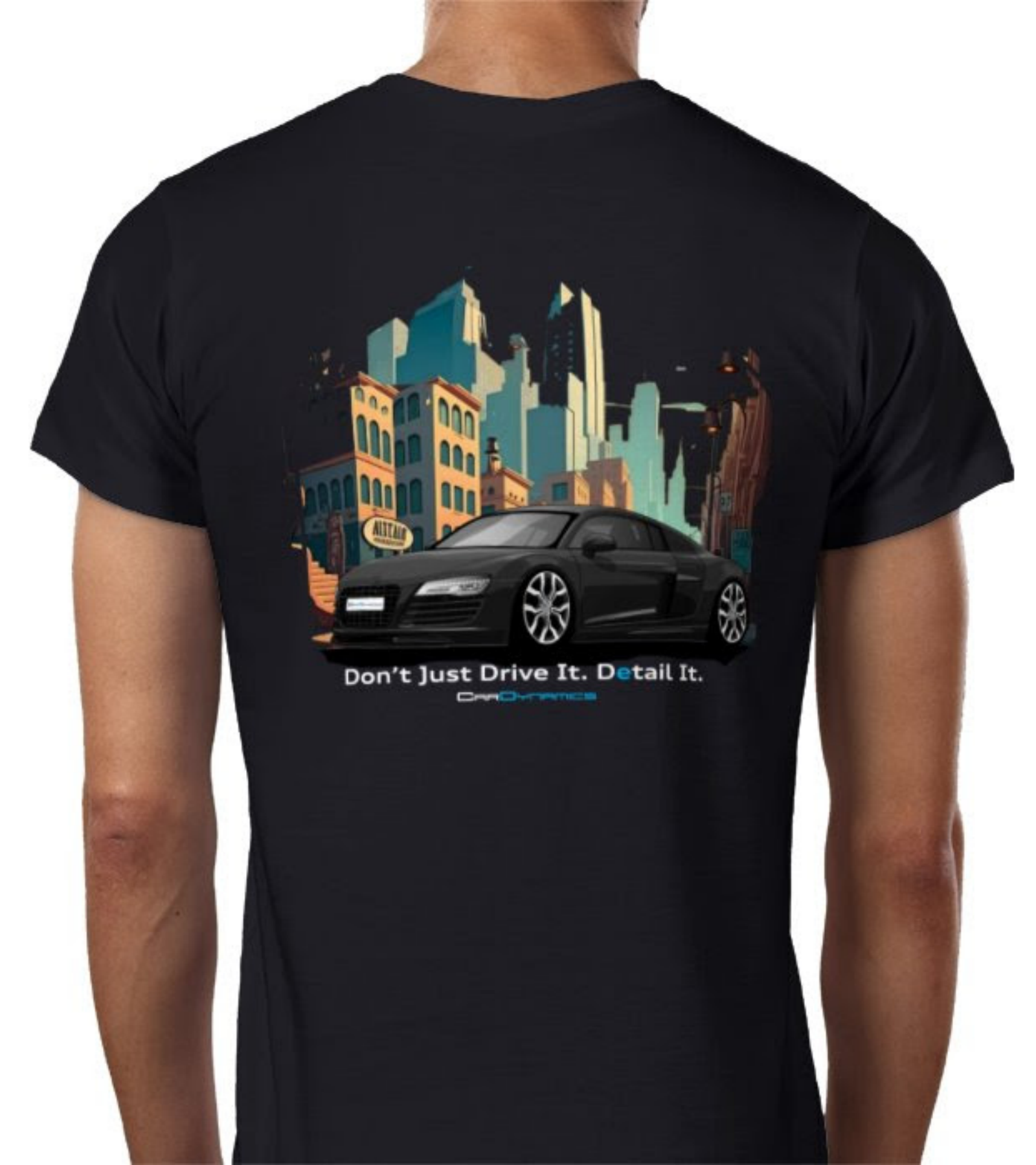 Our customised T-shirt based on Paul's iconic R8 is where passion meets fabric. More than just a T-shirt, this customised T-shirt is a statement of style, precision and passion aimed for those that embrace the detailing lifestyle. Featuring our iconic Car Dynamics logo on the front with a custom design of Paul's R8 on the back, this garment fuses timeless design with modern attitude.