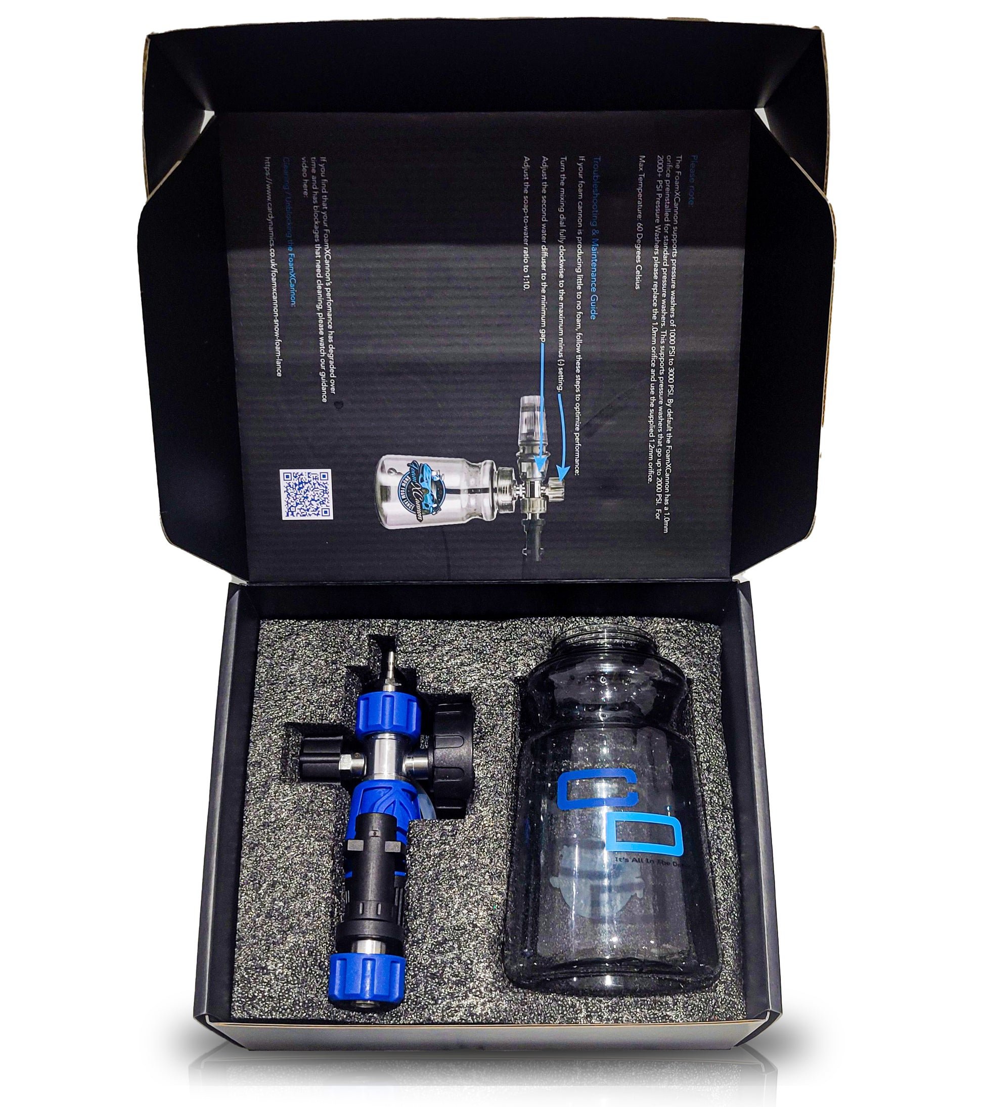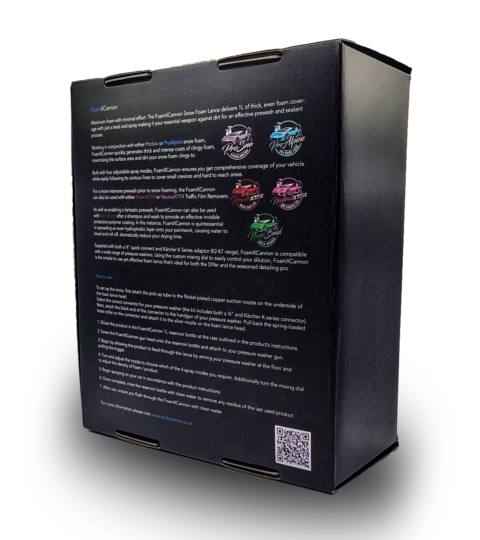 Supplied with both a ¼” quick-connect and Kärcher K Series adaptor (K2-K7 range), FoamXCannon is compatible with a wide range of pressure washers. Using the custom mixing dial to easily control your dilution, FoamXCannon is the simple to use yet effective foam lance that’s ideal for both the DIYer and the seasoned detailing pro.