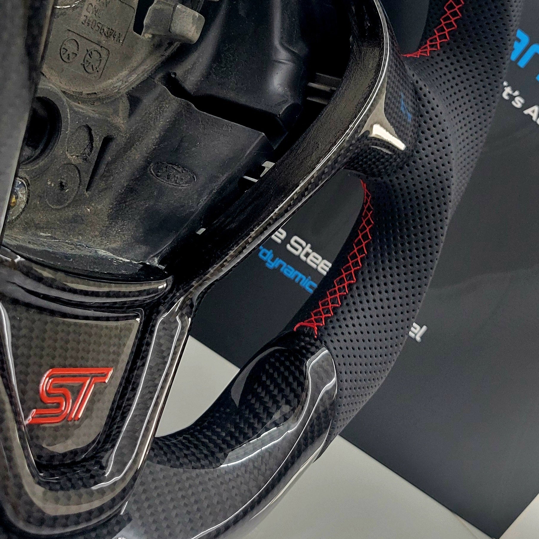 Transform your interior with a custom-made steering wheel, designed exclusively for the Ford Fiesta MK7 and MK7.5 models (2009–2017). Each wheel is crafted to order, allowing you to personalise it down to the finest detail.