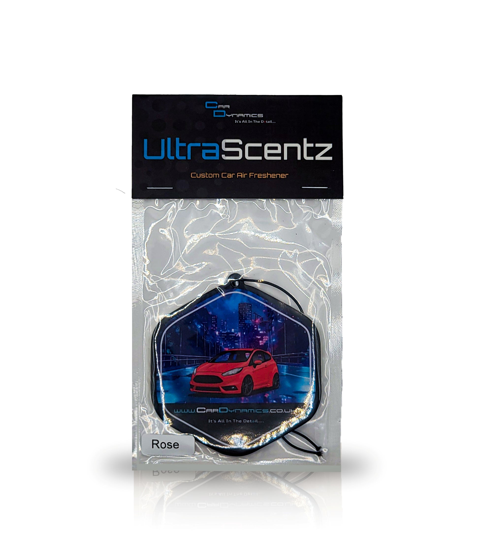 This collector’s piece packs character. Infused with a smooth, elegant rose scent, it adds a refreshing contrast to the ST’s aggressive attitude, balancing power with polish. Featuring a custom illustrated graphic of Neil’s eye catching Fiesta ST, one of the most vibrant and recognised builds in the Car Dynamics community and stamped with the official Car Dynamics logo. This air freshener isn’t just for looks... it’s for those who drive with personality.