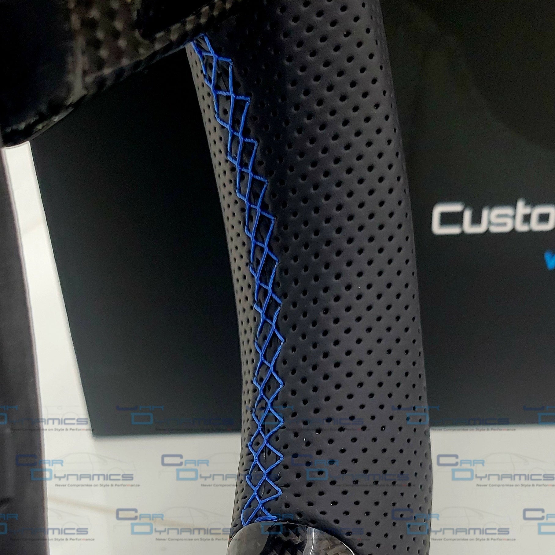 High-quality leather or alcantara with custom colour stitching around the edges for a premium and sporty finish.